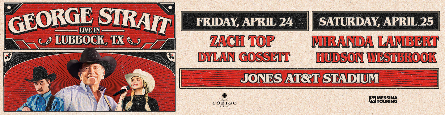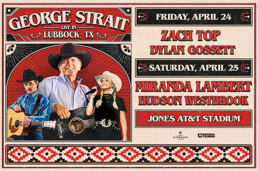 Now through November 18th, visit any United Supermarkets, Market Street, or Amigos store in Lubbock, TX for your chance to snag a pre-sale code to George Strait’s concerts.* The concerts will be at the Jones AT&T Stadium on April 24, 2026 and April 25, 2026. The April 24th concert will feature fellow artists Zach Top and Dylan Gossett, and the April 25th concert will feature fellow artists Miranda Lambert and Hudson Westbrook. This exclusive opportunity gives you the chance to purchase tickets before the general sale begins!